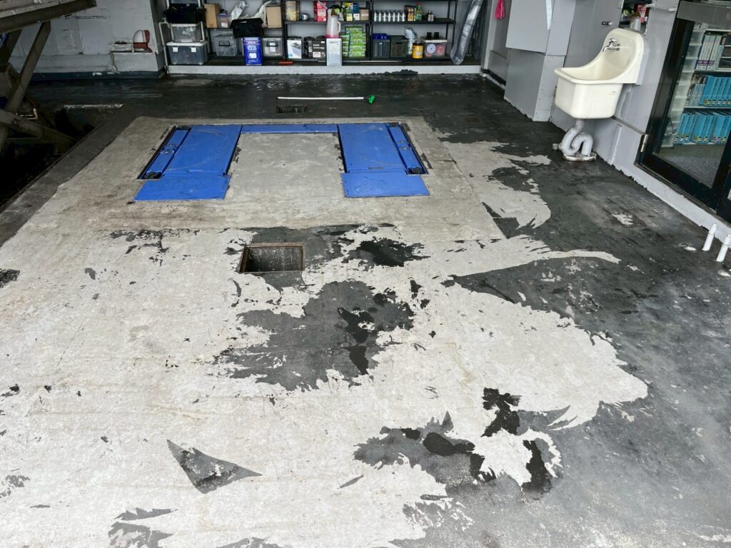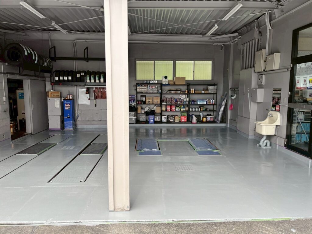 滑りにくく耐油性のある塗装で、スタッフの安全と作業効率を考慮して施工しました。床面の耐久性も確保しています。